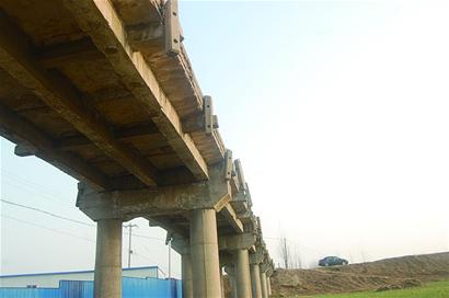 昨天下午,記者來到膠北鎮(zhèn)北梁村南側(cè)北梁橋上看到,這座大橋南北長30多米,寬近4米,站在橋體南側(cè)向橋北側(cè)看去,橋面兩側(cè)的護(hù)欄幾乎已經(jīng)全部斷裂,橋面上一些鋼筋裸露出來,裸露
