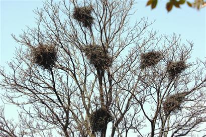 你見過搭建了7個喜鵲窩的大樹嗎?春天來了,記者在市區(qū)、鄉(xiāng)村等地看到了為繁育后代忙活的喜鵲家族,它們素有建筑師之稱,用樹枝、木棍、鐵絲做成的鳥巢個比個的“精致”、“豪華”,有的干脆把大樹當成了小“社區(qū)”,或者幾個窩上下連在一起形成小“高層”,還有的剛剛開始在路燈桿上選址搭建。