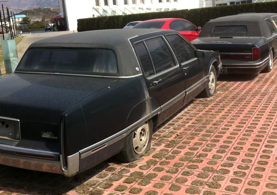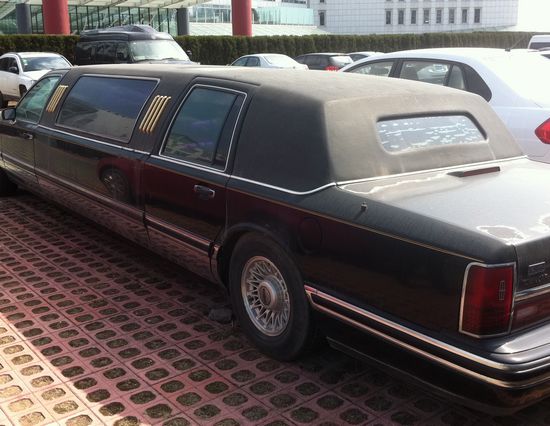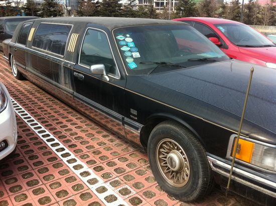 新的是加長(zhǎng)林肯大轎車(chē),車(chē)長(zhǎng)將近9米。盡管歲月侵蝕讓它老氣橫秋,但修長(zhǎng)的車(chē)身和寬大的造型還是顯得霸氣十足。透過(guò)黑色的玻璃向車(chē)內(nèi)望,寬敞的真皮沙發(fā)依舊散發(fā)著油亮的光彩。