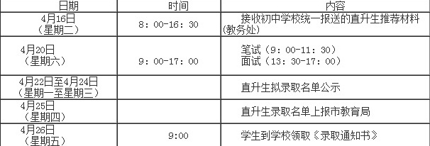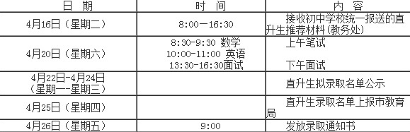 4月16日(星期二)上午8:00~下午4:30,接收初中學(xué)校統(tǒng)一報送的直升生推薦材料: