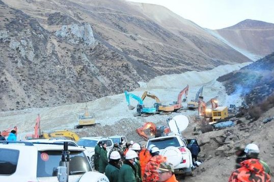 ????3月29日6時(shí)左右,位于中國黃金集團(tuán)華泰龍公司甲瑪?shù)V區(qū)內(nèi)的墨竹工卡縣扎西崗鄉(xiāng)斯布村普朗溝澤日山發(fā)生山體自然塌方并引發(fā)泥石流。據(jù)初步統(tǒng)計(jì),83名工人被埋。