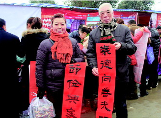 ????此次演出不僅有歡快的舞蹈、喜慶的歌曲,還有精彩絕倫的魔術(shù)、驚心動(dòng)魄的雜技等豐富多彩的表演內(nèi)容,文藝工作者們用飽滿的精神風(fēng)貌和精湛的文藝表演贏得了觀眾們的陣陣掌聲。與此同時(shí),全市近百名書法家現(xiàn)場(chǎng)揮毫潑墨,義務(wù)書寫新春對(duì)聯(lián)免費(fèi)送,也使得等待領(lǐng)取春聯(lián)的市民們?cè)缫雅牌鹆碎L隊(duì),大家紛紛表示,手寫的春聯(lián)既喜慶又好看,無疑為家中增添了濃濃的年味和文化氣息。(貴州日?qǐng)?bào): 楊唯 攝影報(bào)道)
