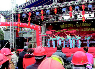 ????近日,由省委宣傳部、省文化廳、省文聯(lián)主辦的“與祖國同行·與人民同心”文藝工作者送歡樂下基層慰問演出暨安順市“弘揚(yáng)我的價(jià)值觀·安順百名書法家義務(wù)書寫春聯(lián)”活動(dòng)在苗嶺屯堡廣場(chǎng)舉行。