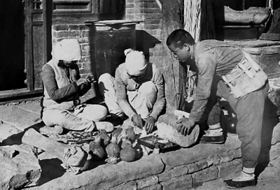 根據(jù)地民兵在連接地雷。圖片來源:北京日報
