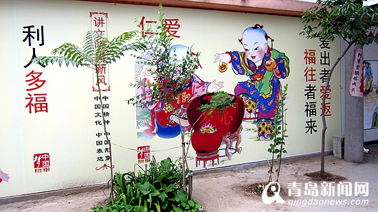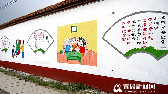 ????青島新聞網(wǎng)7月7日訊? 新二十四孝圖、京劇臉譜一條街、傳統(tǒng)美德國(guó)畫(huà)……近日,平度市東閣街道辦事處組織畫(huà)師在轄區(qū)村莊繪制各種特色文化墻,一幅幅清新淡雅、蘊(yùn)意深遠(yuǎn)的圖片呈現(xiàn)在村內(nèi)景觀墻中,既美化了環(huán)境,倡導(dǎo)了核心價(jià)值觀,又傳播了婚育新風(fēng)。