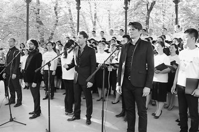????夏季的盧森堡公園樹木蔥蘢,優(yōu)美雄壯的歌聲在樹葉間縈繞,綠樹掩映下的歌唱者和觀眾仿佛都陶醉了。觀眾里有專程前來聽音樂會的法國文獻(xiàn)專家,也有駐足流連的一家三口,雖然語言不通,但音樂本身傳遞出的反對侵略、歌頌和平的信息感染了現(xiàn)場的每一個人。