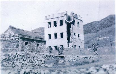????昨天,記者從市博物館得到了兩張珍貴的照片,一張是駐扎在嶗山的國民黨青島保安總隊的照片,另一張是被“青?!惫ハ莸娜諅诬姷锉?。嶗山黨史研究室工作人員說,這個碉堡是嶗西區(qū)大嶗之役中“青?!惫ハ莸娜諅诬姷锉ぁT摀?jù)點非常堅固,外圍有深濠,但全體官兵奮勇攻下,擊斃偽軍三十七名,“青保”陣亡中士班長劉悅智、張先吉及上等兵高澤化三名,傷五名。