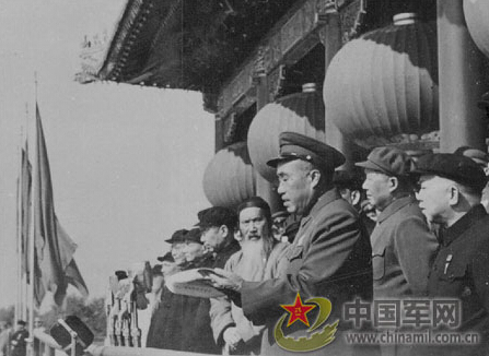 ????1、中國人民志愿軍代表團(tuán)出現(xiàn)在天安門觀禮臺上。