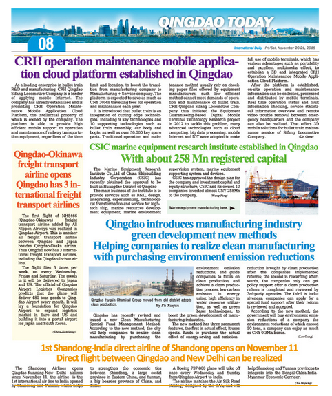 ????In terms of landscape construction, the Wenquan River and Nanbo River view improvement projects are all completed and opened to the public. In order to enable company employees to have more a convenient transit during rush hours, the zone also establishes a Blue Silicon Valley Temporary Bus Hub Stop and opens 7 bus lines to establish a non-stop link between Qingdao, Jimo and the zone. Meanwhile, the zone plans to build a Shandong provincial hospital Qingdao branch near the zone. As the 1st 3rd-Level Grade A hospital in Northern Qingdao, the hospital will be put into use in 2017. The Qingdao No.19 Middle School, Shandong University affiliated Middle School, primary school and kindergartens are all under construction.