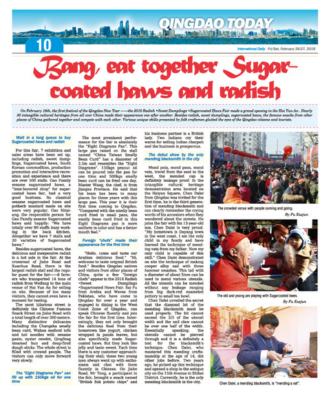 ????Since then Sun has shouldered two heavy responsibilities: family and business. She got her driving license at the fastest speed. One or two every early morning she goes out and drives to the Chengyang District nearby to purchase materials, then comes back home to unload materials and process it, and place goods for sale before seven, and she usually eats after one in the afternoon, then she will do household affairs. The business performed well as before thanks to her efforts.