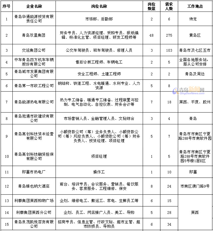 ????青島市首批國有企業(yè)就業(yè)扶貧崗位需求信息匯總表