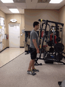 ????先來做單腿深蹲,它可以鍛煉你的核心肌群、臀肌、股四頭肌,以及腳踝和腳部用于維持穩(wěn)定的小型肌群(這些肌群經(jīng)常超負(fù)荷運(yùn)作)。剛開始鍛煉的時(shí)候,你可能只需要利用自身體重,再加上一條方便手抓的橫杠或椅子把手。在穩(wěn)定性和力量得到提高以后,再額外增加重量。
