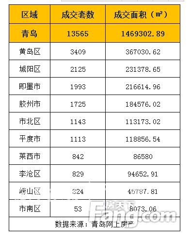 ????據(jù)青島網(wǎng)上房產(chǎn)數(shù)據(jù)統(tǒng)計顯示,4月青島新房住宅網(wǎng)簽13565套,環(huán)比下降17.22%。從成交區(qū)域來看,黃島區(qū)、城陽區(qū)、即墨市分獲成交前三,分別成交3409套、2125套、1993套。