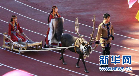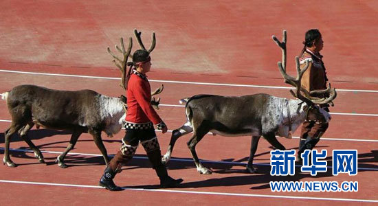 ????7月12日,呼倫貝爾,敖魯古雅鄂溫克人帶馴鹿參加內(nèi)蒙古自治區(qū)第九屆少數(shù)民族傳統(tǒng)體育運(yùn)動會開幕式。任婷婷攝