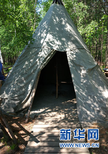 6月22日,敖魯古雅使鹿部落景區(qū),“撮羅子”狀的棚子。新華網(wǎng)張敏彥 攝