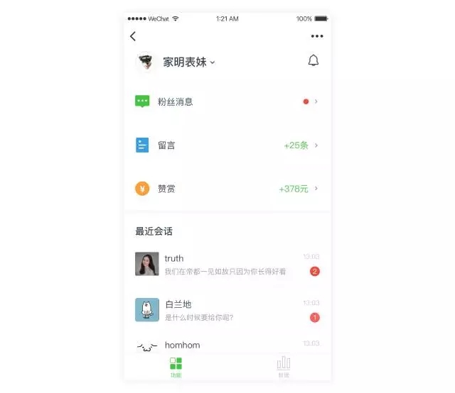 2、【公眾平臺助手】小程序支持公眾號管理員及運營者在手機端更加方便及時地回復(fù)用戶消息、管理留言和贊賞、查看通知;