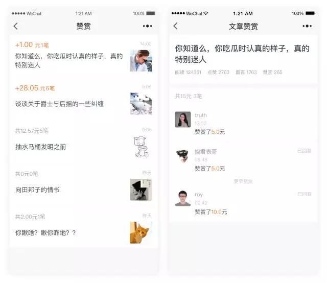 開通了贊賞功能的公眾號,可查看每篇文章的贊賞,回復(fù)贊賞的用戶。