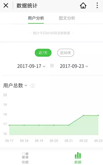 可以在小程序中,隨時查看用戶和圖文數(shù)據(jù)分析情況;