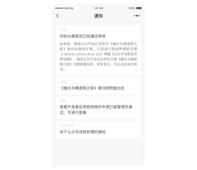 可在小程序中及時接收查看系統(tǒng)通知。
