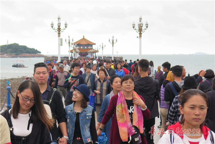 8日是國慶長假的最后一天。濛濛細雨并沒有阻擋游人的腳步,棧橋上依然游客如織。王雷攝