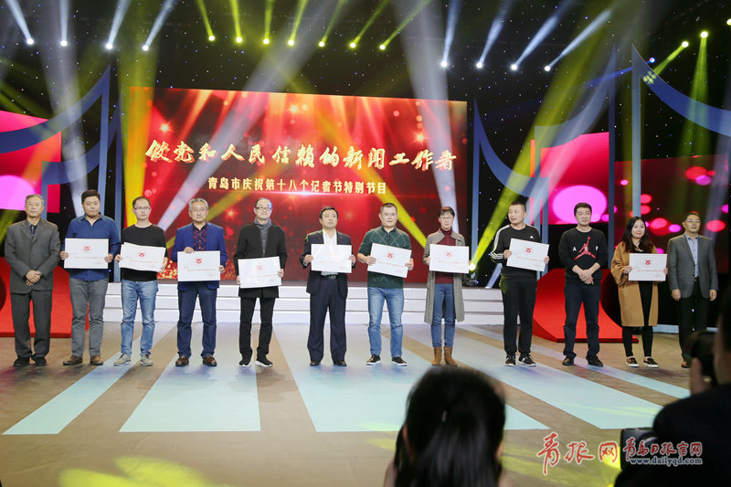 此次“特別節(jié)目”由青島市委宣傳部、市新聞工作者協(xié)會(huì)主辦,青島日?qǐng)?bào)社、青島市廣播電視臺(tái)、青島出版集團(tuán)、半島都市報(bào)社聯(lián)合協(xié)辦,在90分鐘的節(jié)目?jī)?nèi)容里,首屆青島市新聞?dòng)⒉糯螵?jiǎng),首屆青島市新聞?dòng)⒉弄?jiǎng)提名獎(jiǎng),“2017年青島市優(yōu)秀新聞工作者”,“2017年青島市優(yōu)秀新聞工作團(tuán)隊(duì)”等本土重量級(jí)新聞獎(jiǎng)項(xiàng)陸續(xù)頒出。在屬于新聞人自己的節(jié)日,奔走在一線、作為時(shí)代發(fā)展的觀察者、記錄者、參與者和建設(shè)者的優(yōu)秀新聞人和優(yōu)秀團(tuán)隊(duì),共同聚焦閃光燈下,自己成為鏡頭前的絕對(duì)主角,以其各異的新聞履歷和所堅(jiān)守的富有正能量的新聞?dòng)^,展現(xiàn)出一群富有創(chuàng)造力和使命感的本土新聞人的鮮活形象。特別值得一提的是,年過(guò)七旬的農(nóng)民作家王度極老先生特別到場(chǎng),為新聞?dòng)⒉糯螵?jiǎng)的獲獎(jiǎng)?wù)哳C獎(jiǎng),并以個(gè)人獨(dú)特的詩(shī)詞創(chuàng)作方式,致敬青島新聞工作者。