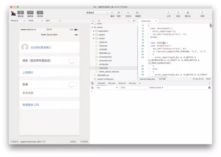 此次新能力更新中,微信終于讓開(kāi)發(fā)者工具支持「全世界最好的語(yǔ)言」PHP。同時(shí),開(kāi)發(fā)者工具中的騰訊云集成,也添加了 PHP支持。