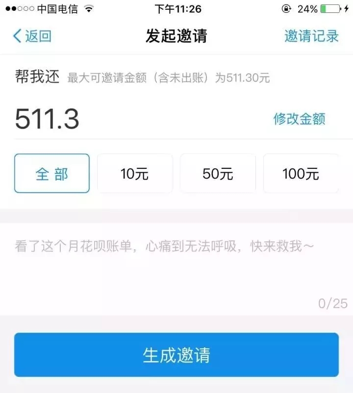 目前找朋友幫還功能的最大可邀請金額并不能超過螞蟻花唄的賬單金額。