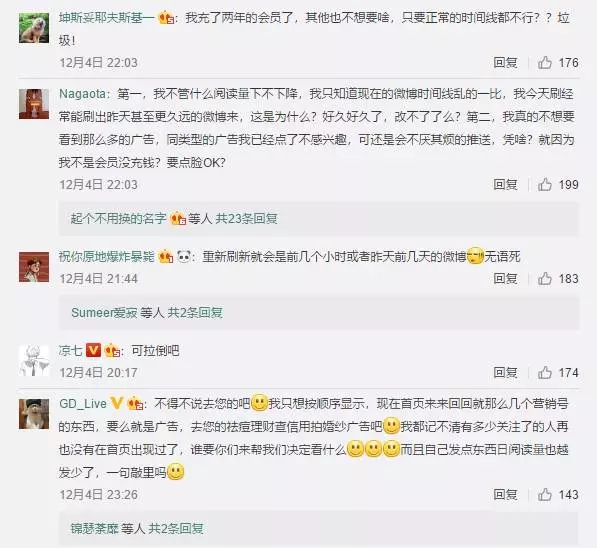 這讓微博開始有些坐不住,盡管在11月7日微博發(fā)布的三季度財報上,營收和凈利一路高歌,但之后的幾天,大量微博用戶,尤其是大V對微博改版后的吐槽,鋪天蓋地,即便到現(xiàn)在吐槽依然存在。