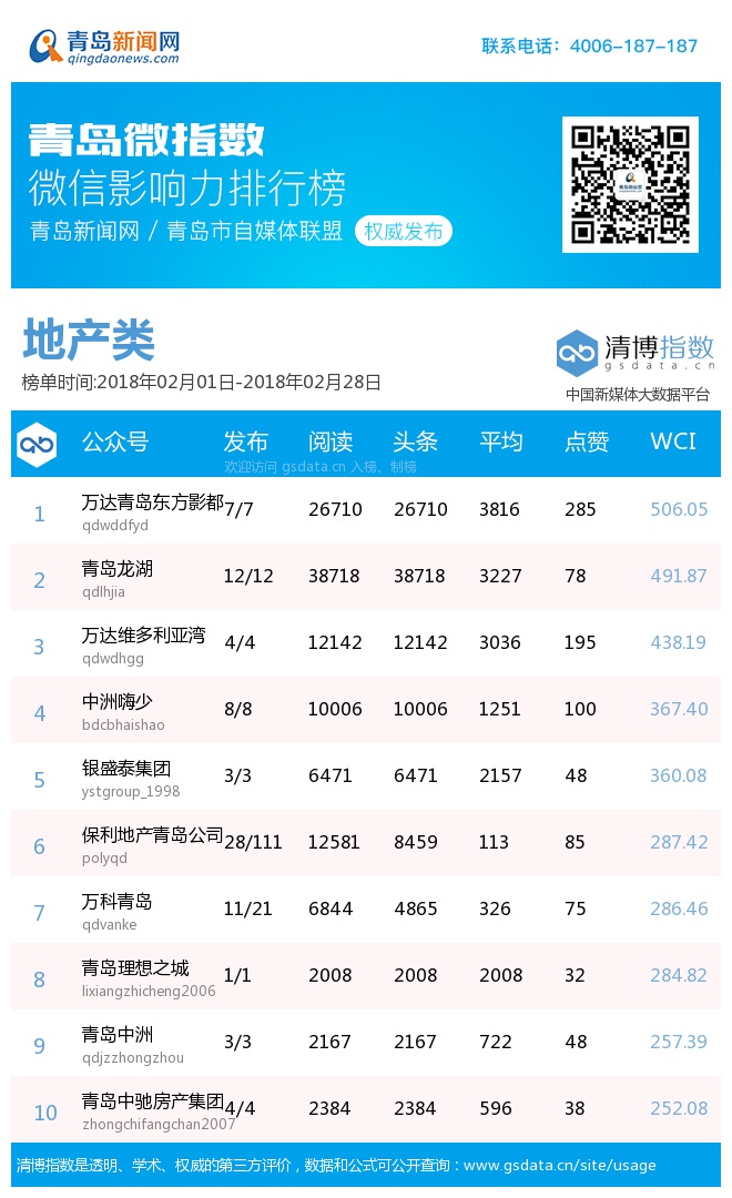 地產(chǎn)類微信影響力排行榜(2月1日-2月28日)
