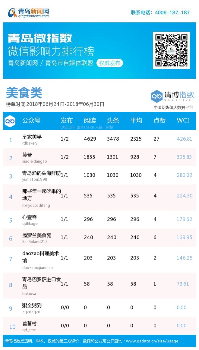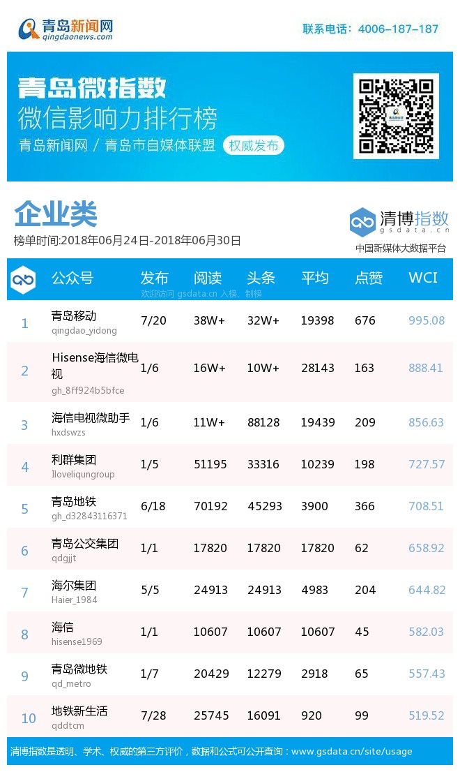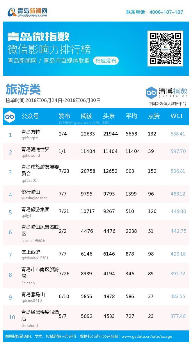 3、本次榜單收錄了青島14個行業(yè)微信公眾號,如您的賬號暫未收錄,可聯(lián)系4006-187-187。
