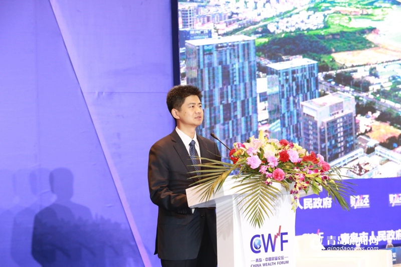 青島市金融工作辦公室副主任、青島金家?guī)X金融區(qū)管委會副主任王鋒致辭。