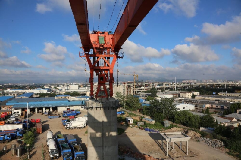架橋機(jī)氣勢(shì)恢宏地矗立在城市的上方