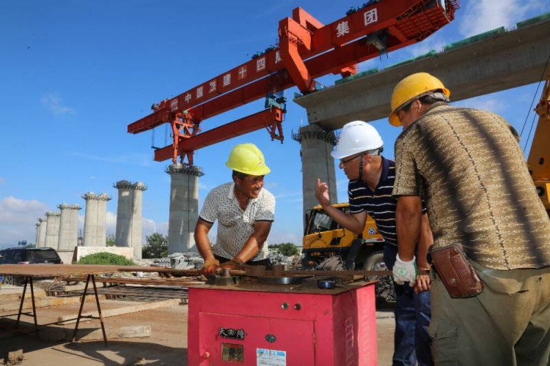 已身為項(xiàng)目部經(jīng)理張洪星介紹,按要求9月30日完工是高難度動(dòng)作,為此青連項(xiàng)目部做了大量的準(zhǔn)備工作。首先項(xiàng)目部從中鐵十四局五公司其它項(xiàng)目上調(diào)集了千人的專業(yè)鋪軌人員,采用不間斷施工法。其次,由原來(lái)的一臺(tái)900噸運(yùn)梁車增加到兩臺(tái),新來(lái)的一臺(tái)正在工地組裝調(diào)試,馬上就可以投入使用。項(xiàng)目部?jī)膳_(tái)900噸箱架梁機(jī)以每天八孔架梁速度推進(jìn)?!澳艽蚬?jiān)戰(zhàn)得益于改革開(kāi)放以來(lái)高鐵施工積攢下來(lái)的人才、技術(shù)資源和配套的施工設(shè)備?!睆埡樾钦f(shuō)。