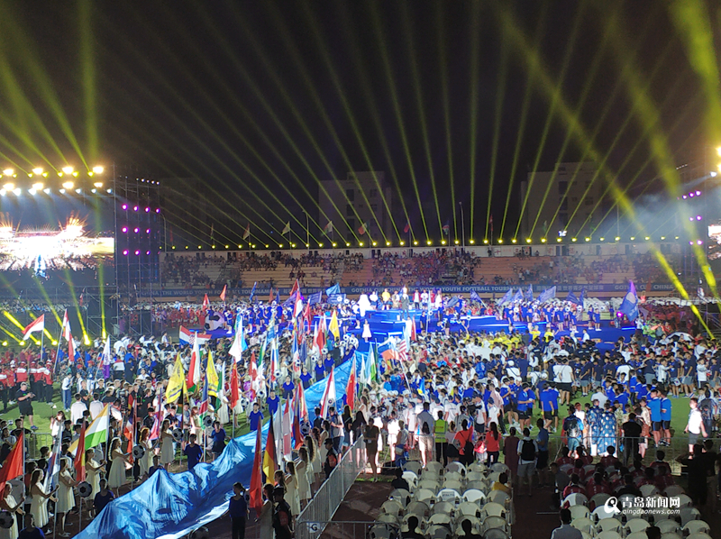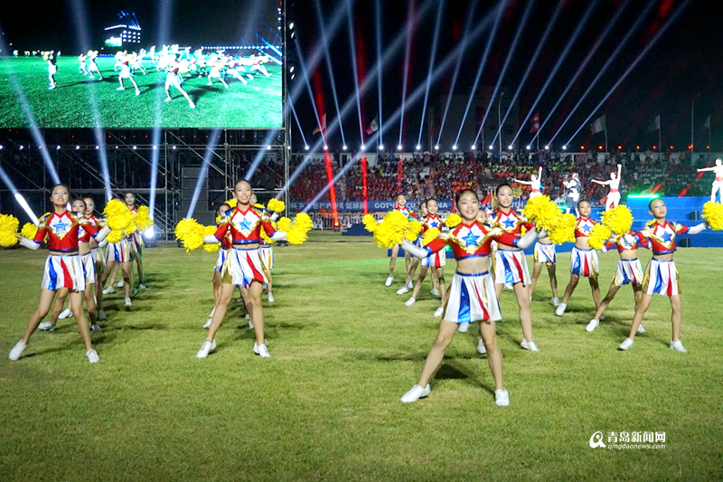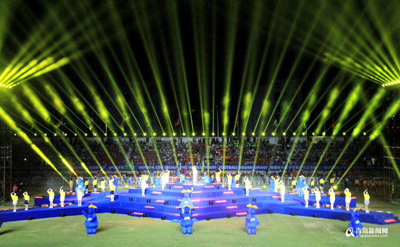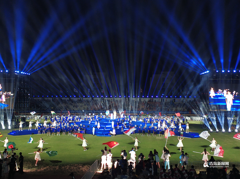 青島新聞網(wǎng)8月13日訊(記者 任俊峰 寧冠宇) 8月12日晚,位于城陽區(qū)的青島農(nóng)業(yè)大學(xué)體育場(chǎng)流光溢彩,萬眾矚目,有“小世界杯”之稱的2018“哥德杯中國(guó)”世界青少年足球賽舉辦了盛大的開幕式。來自世界各地33個(gè)國(guó)家和地區(qū)的306支球隊(duì),近萬名球員及助威團(tuán)齊聚青島農(nóng)業(yè)大學(xué)體育場(chǎng),數(shù)百名國(guó)內(nèi)外演員盛裝出場(chǎng),在長(zhǎng)達(dá)一個(gè)半小時(shí)的演出時(shí)間里,為現(xiàn)場(chǎng)觀眾呈現(xiàn)了一場(chǎng)世界文化與中國(guó)元素相互映襯的足球文化盛會(huì)。