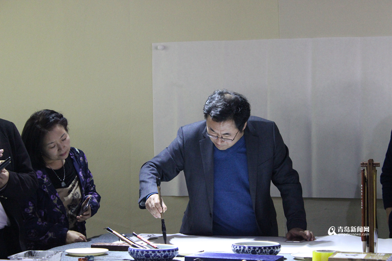 出席活動嘉賓參觀了來德書院,互相交流藝術心得,部分藝術家現(xiàn)場揮毫潑墨,為此次參加活動的200多位來賓帶來了一場視覺盛宴。他們表示:書院是保護、傳承中國傳統(tǒng)文化最有效的方式之一,而對文字的書寫,則是傳承中國文化一個非常有效的通道。來德書院將會在膠州這篇土壤上讓優(yōu)秀的傳統(tǒng)文化開出絢爛的花朵。