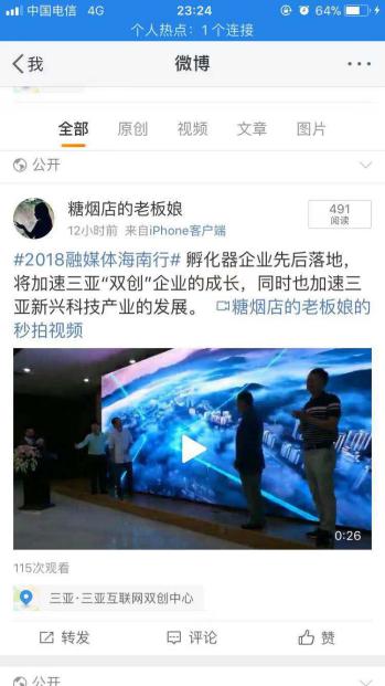 廣西新聞網(wǎng)微博:#2018全國融媒體海南行#孵化器企業(yè)先后落地,將加速三亞“雙創(chuàng)”企業(yè)的成長。