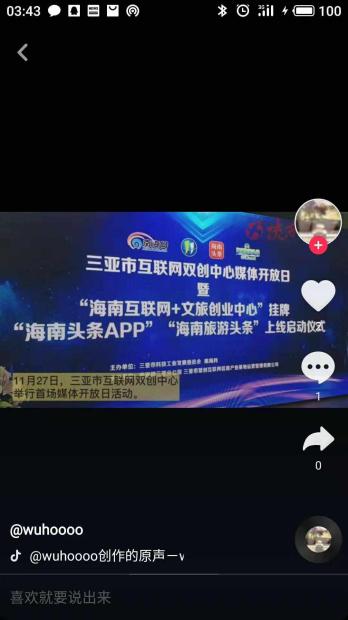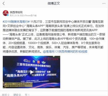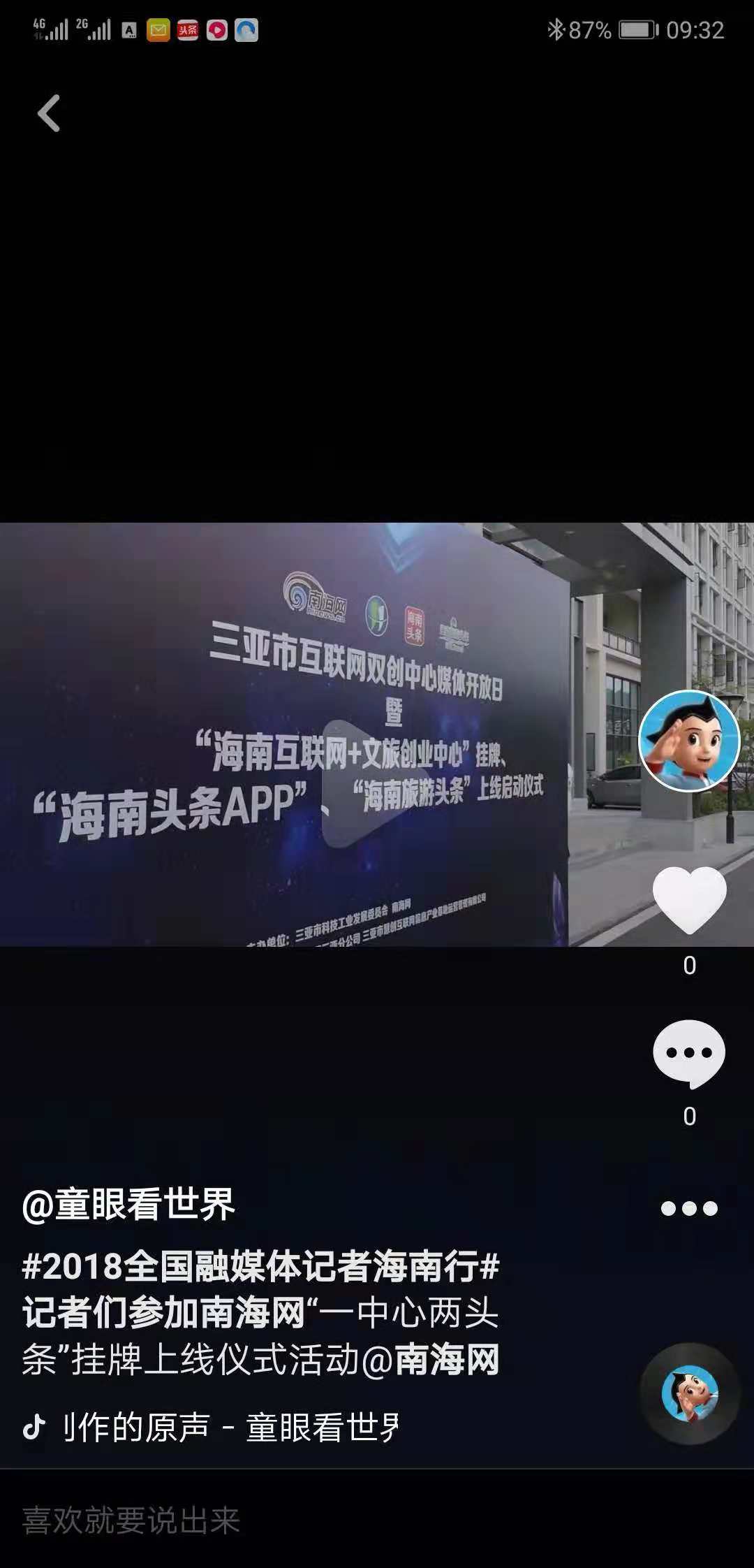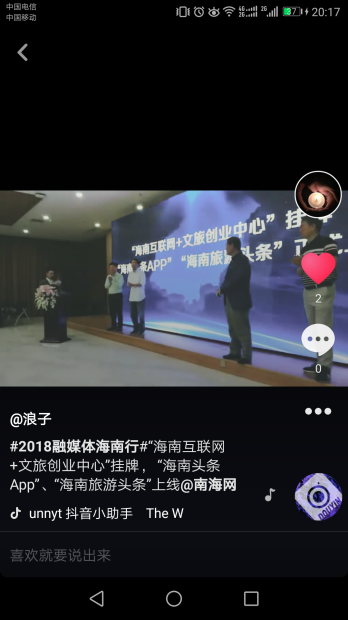 天山網(wǎng)抖音視頻截圖:#2018融媒體海南行?!昂D匣ヂ?lián)網(wǎng)+文旅創(chuàng)業(yè)中心”掛牌,“海南頭條app”、“海南旅游頭條”上線