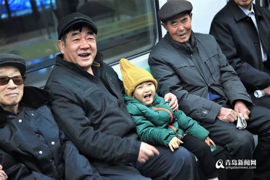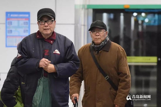 開通首日的乘客中不乏年事已高的老年人身影,還有從青島市區(qū)坐公交,專門來感受13號線的耄耋老人,80歲的邵吉堂(右)就是其中之一。