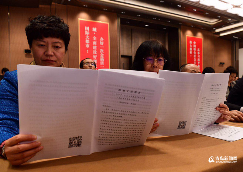 在代表委員們拿到的紙質(zhì)版政府工作報告中,由青島新聞網(wǎng)制作的《圖解政府工作報告》二維碼出現(xiàn)在封底,代表們只要拿出手機掃描二維碼,便可閱讀報告的圖解。