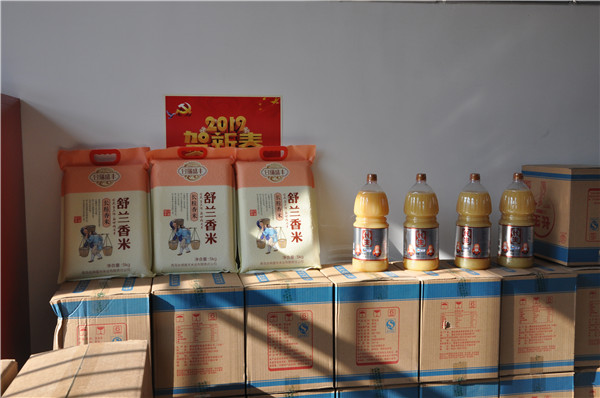 上午10點(diǎn),青島福彩志愿者們來(lái)到平度市店子鎮(zhèn)南盛家村,為當(dāng)?shù)卮迕袼腿チ?0份大米、花生油禮包。村民們得知要發(fā)“年貨”,都早早來(lái)到村委。領(lǐng)到大米和花生油的76歲老人孫澤先說(shuō):“現(xiàn)在生活條件好了,吃的少了,今天收到的這些大米、花生油夠我吃上好幾個(gè)月的!感謝福彩中心!”