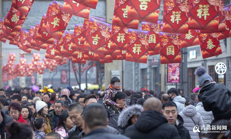 市民游客相聚即墨古城過大年。(邱龍江 攝)
