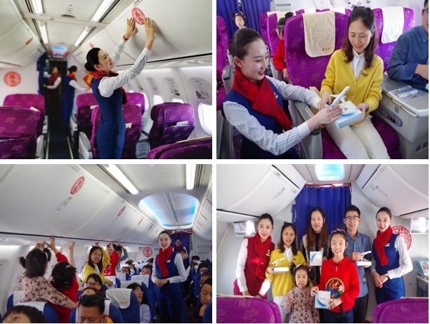 冬去春來(lái),辭舊迎新。2019年2月4日,恰逢闔家團(tuán)圓的幸福時(shí)刻,中華大地到處都充滿了濃濃的節(jié)日氣氛。在昆明飛往青島的SC4738航班上,山航客艙部青島大隊(duì)劉杰魯雁乘務(wù)組與旅客朋友們相聚在萬(wàn)米高空,共度佳節(jié)。航前,她們精心布置了有年味兒的客艙,在萬(wàn)米高空與旅客朋友一起辭舊歲迎新春,讓大家的旅途時(shí)光不再漫長(zhǎng)。