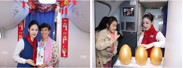 乘務(wù)組開展了“好運(yùn)驚喜金花四射”活動(dòng),抽取幸運(yùn)旅客上前砸金蛋,旅客滿懷期待卯足了勁將金蛋打開,笑容溢于言表。幸運(yùn)旅客劉先生表示:“大概有一年沒回家了,說(shuō)起來(lái)很慚愧,工作忙,家又遠(yuǎn),今年父母正式退休了,終于有機(jī)會(huì)帶二老出門旅游,很感謝山航準(zhǔn)備的精美禮品,很驚喜,很貼心。”