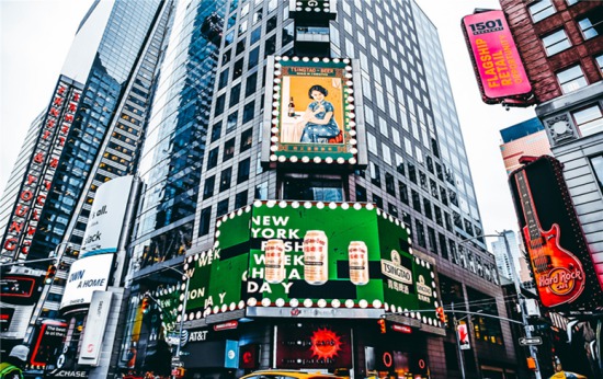 這場中國文化的潮牌熱度,也從紐約時(shí)裝周中國日秀場延伸到整座城市。在紐約時(shí)代廣場,變化炫目的青島啤酒經(jīng)典1903復(fù)古罐與時(shí)尚優(yōu)雅老廣告畫,引發(fā)著非常高的回頭率。而在此次紐約時(shí)裝周中國日潮服發(fā)布之后,青島啤酒潮服受到了眾多紐約年輕人的喜愛和追捧,限量復(fù)古罐產(chǎn)品和走秀款時(shí)裝的限時(shí)發(fā)布,更在紐約街頭引起了民眾排隊(duì)追售。