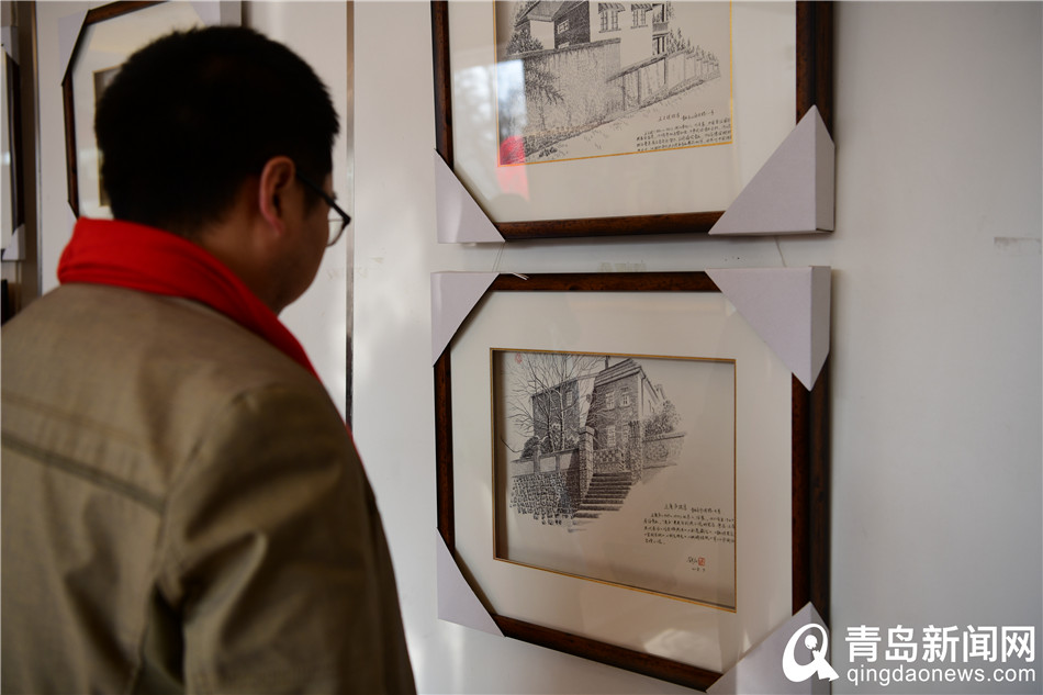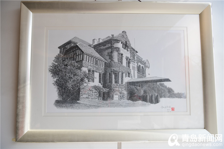 “第一次沒(méi)經(jīng)驗(yàn),畫得特別慢。白天一有空就跑到街上去看,觀察房子的細(xì)節(jié),然后速記下來(lái)起草,到晚上畫時(shí)感覺(jué)角度不對(duì),不能充分展現(xiàn)故居的精神風(fēng)貌,我就再去觀察。”用了一年的時(shí)間,他完成了青島第一批20組名人故居的創(chuàng)作。