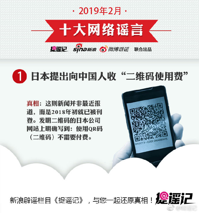 2月份不平靜,各類謠言蠢蠢欲動,“日本提出向中國人收‘二維碼使用費’”的假消息一度引熱議,“公攤面積”要取消、“游泳將納入中考體育必考項目”等不實消息令不少網(wǎng)友上當。捉謠記梳理了2月份十大網(wǎng)絡謠言,來看你有沒有被忽悠。