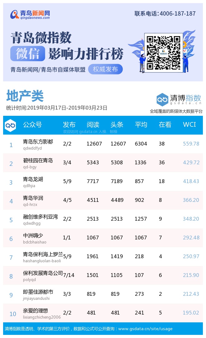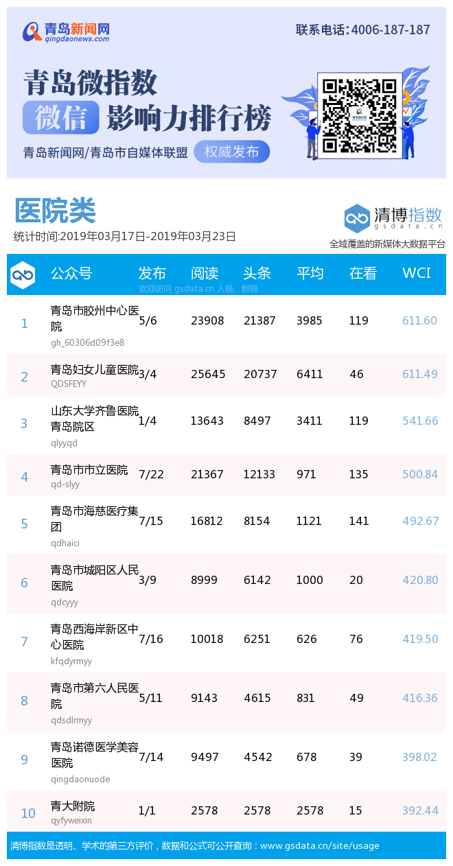 3、本次榜單收錄了青島14個行業(yè)微信公眾號,如您的賬號暫未收錄,可聯(lián)系4006-187-187。