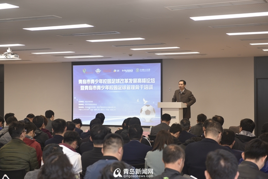 青島新聞網(wǎng)4月3日訊(記者 于泓)為加快推進(jìn)我市青少年校園足球改革創(chuàng)新發(fā)展,搭建區(qū)(市)及青少年校園足球特色學(xué)校學(xué)習(xí)交流平臺(tái),推廣先進(jìn)典型經(jīng)驗(yàn),部署安排2019年青島市青少年校園足球推進(jìn)工作,4月3日下午,由青島市教育局主辦,青島市校園足球協(xié)會(huì)承辦,西海岸新區(qū)教體局、中德體育文化傳播有限公司、中糧可口可樂飲料(山東)有限公司、山東路克士體育科技有限公司協(xié)辦的青島市青少年校園足球改革發(fā)展高峰論壇暨青島市青少年校園足球管理骨干培訓(xùn)在中德生態(tài)園舉辦。