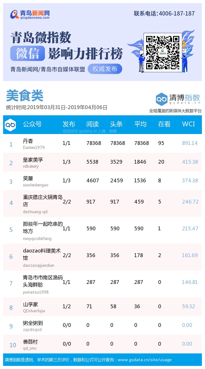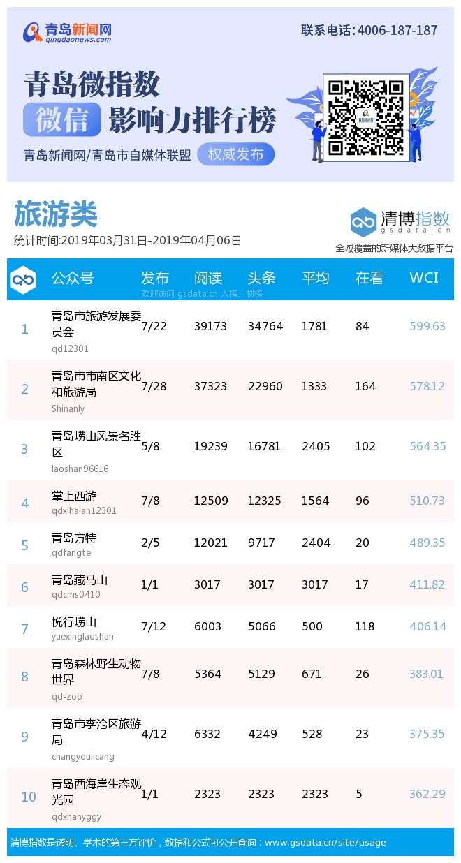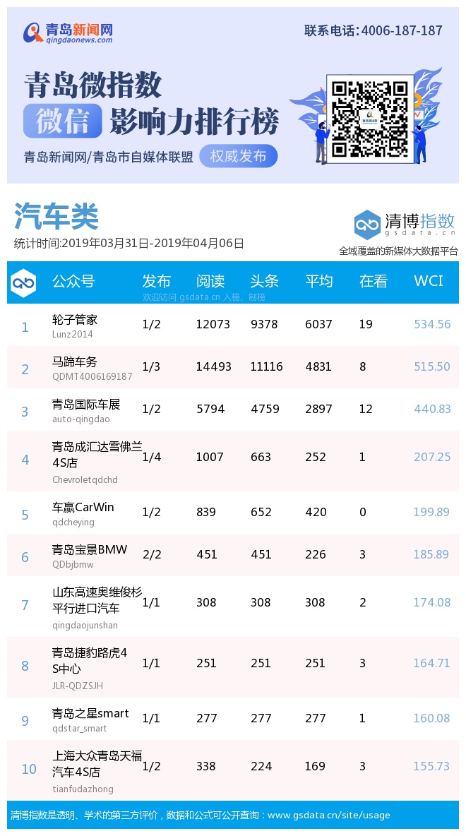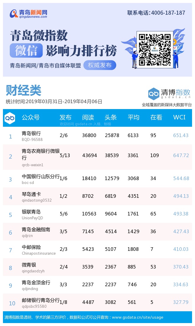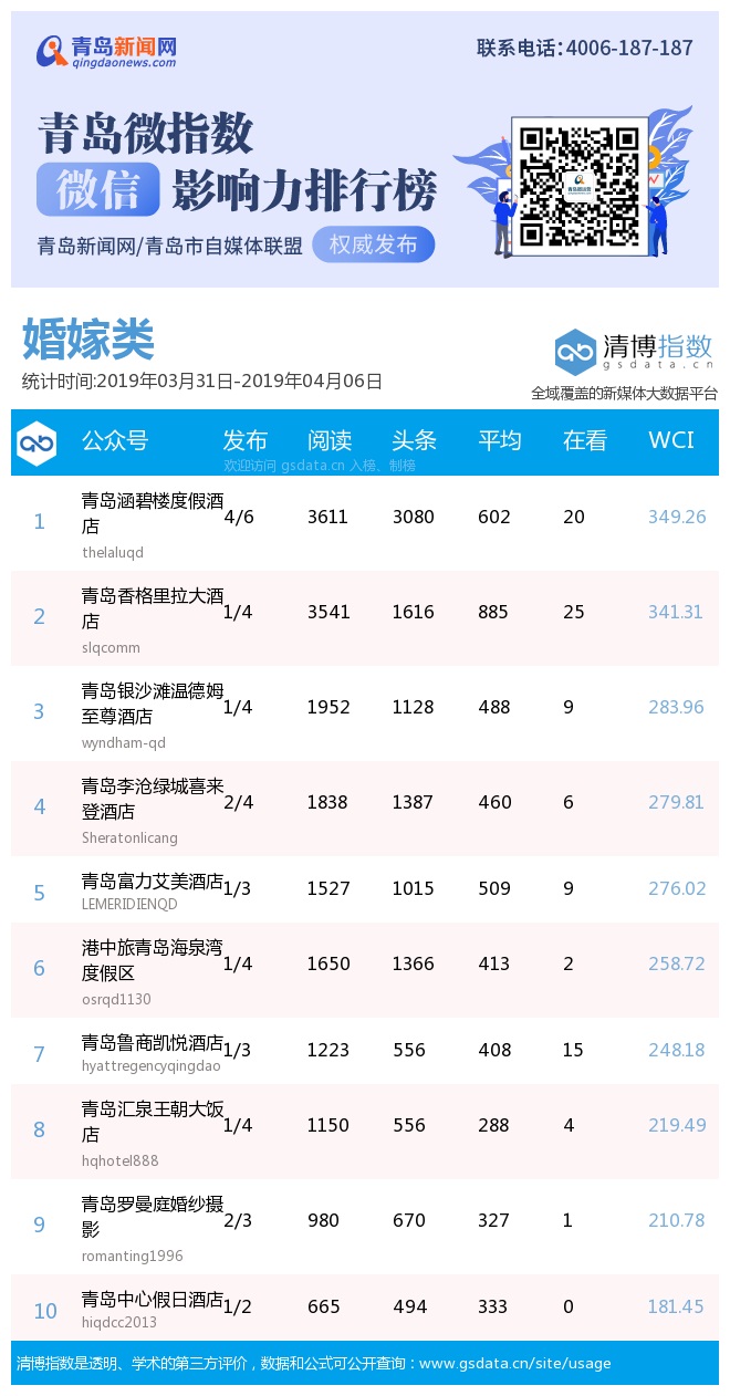 3、本次榜單收錄了青島14個(gè)行業(yè)微信公眾號(hào),如您的賬號(hào)暫未收錄,可聯(lián)系4006-187-187。