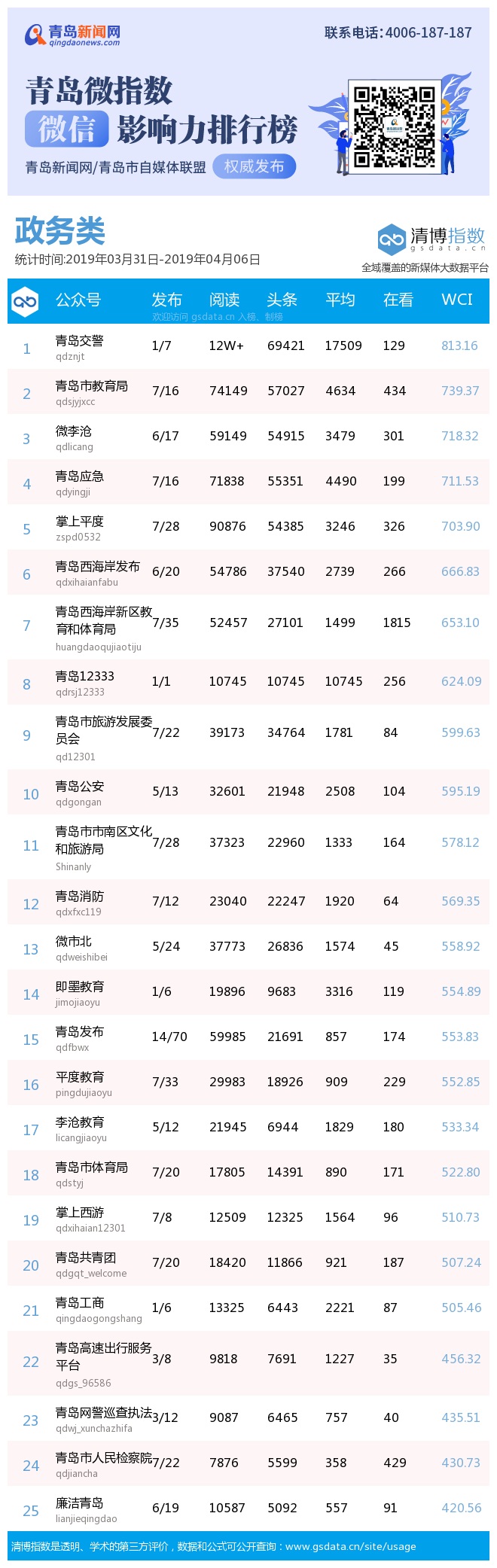 其中,政務(wù)類榜單中,“青島交警”憑借一篇清明假期交通安全出行提示文,以總閱讀數(shù)12萬(wàn)+,WCI指數(shù)813.16的成績(jī)拔得頭籌;“微李滄”連升33個(gè)席位,拿下本期第3名,成為本期最大黑馬,其發(fā)布的“震撼來(lái)襲!大型航拍記錄片《飛越李滄》正式發(fā)布!”一文,以總閱讀48515次,點(diǎn)贊230次的成績(jī)占據(jù)熱文榜第二名。